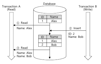- 하나의 트랜잭션 안에서 일정범위의 레코드를 두번 이상 읽을 때, 첫 번재 쿼리에는 없던 유령 레코드가 두번째 쿼리에서 나타나는 현상